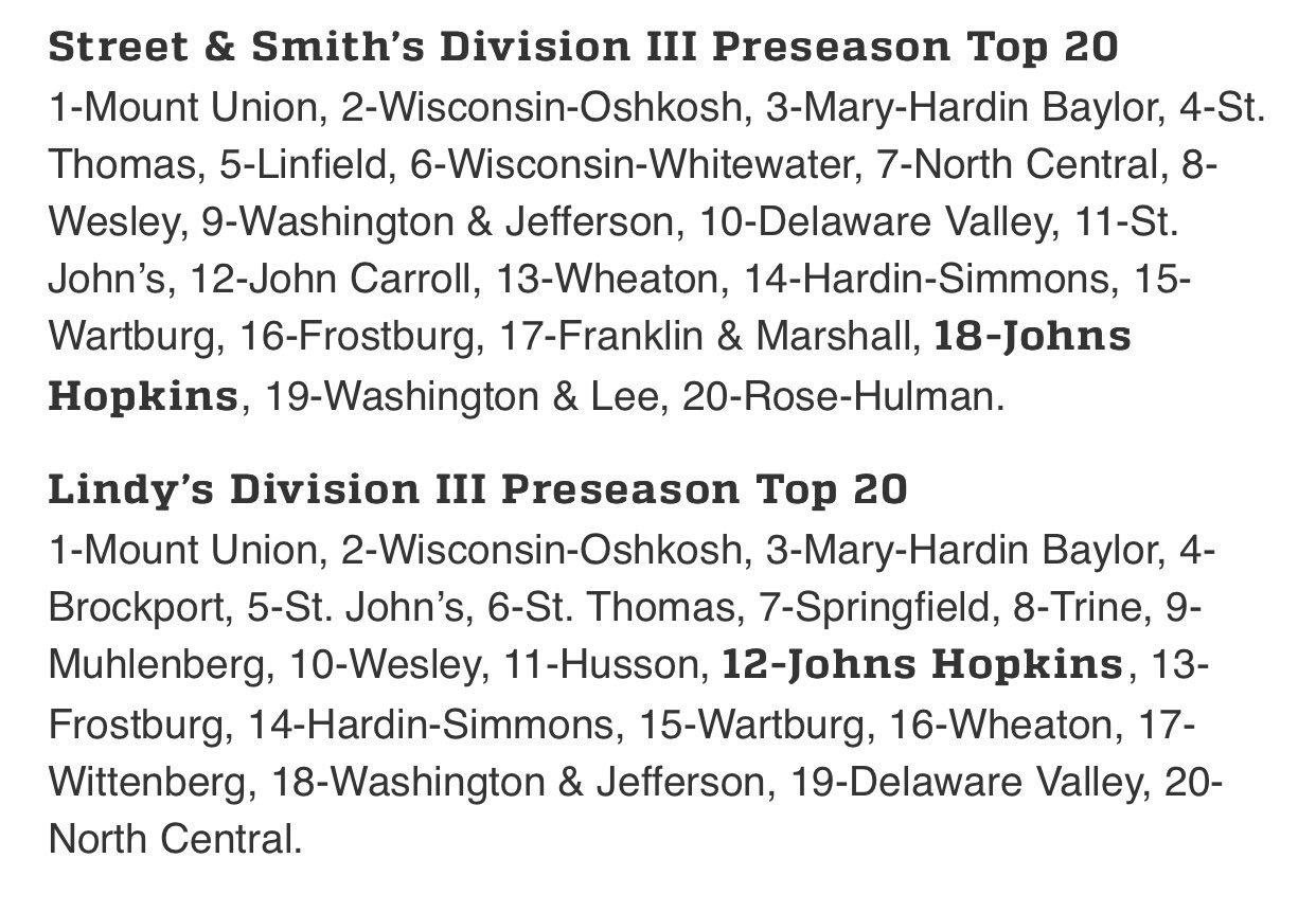 Street & Smith is a new one to me, but they seem to have a better grasp on DIII football than Lindy's.