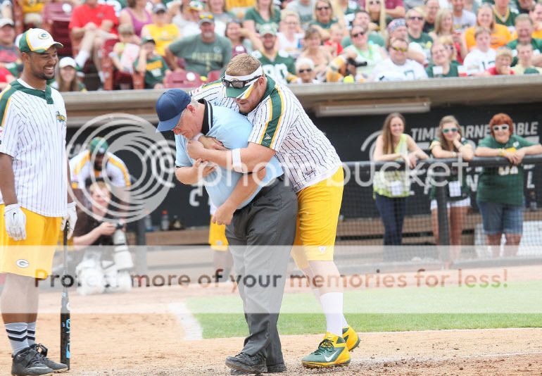 But anyway is this you or one of your umpire colleagues playing around with TJ Lang after his HR? Looks like he's trying to establish the sleeper hold on you...or something we can't mention on here. The big question is what happened next?