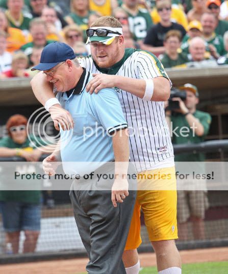 Yeah that would be me.  TJ Lang said he was out of gas about 10 feet from the plate, so being a proud Packer Backer, I considered it my duty to help him out.  And, man, that dude is ENORMOUS.  And Josh Sitton is probably even a tad bigger, but I didn't have to "carry" him.