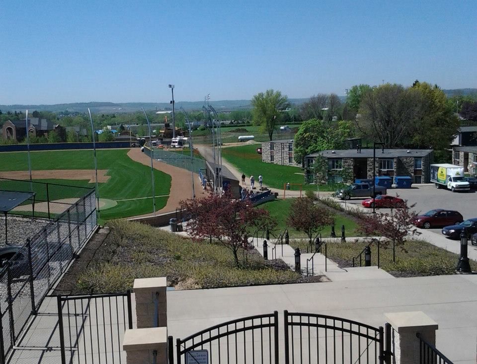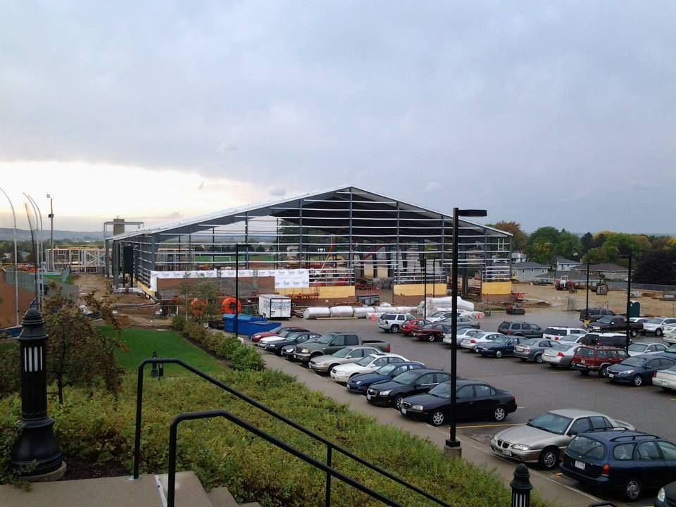 4 1/2 months later we have bricks and mortar going up on the shell of the Indoor Practice Facility...