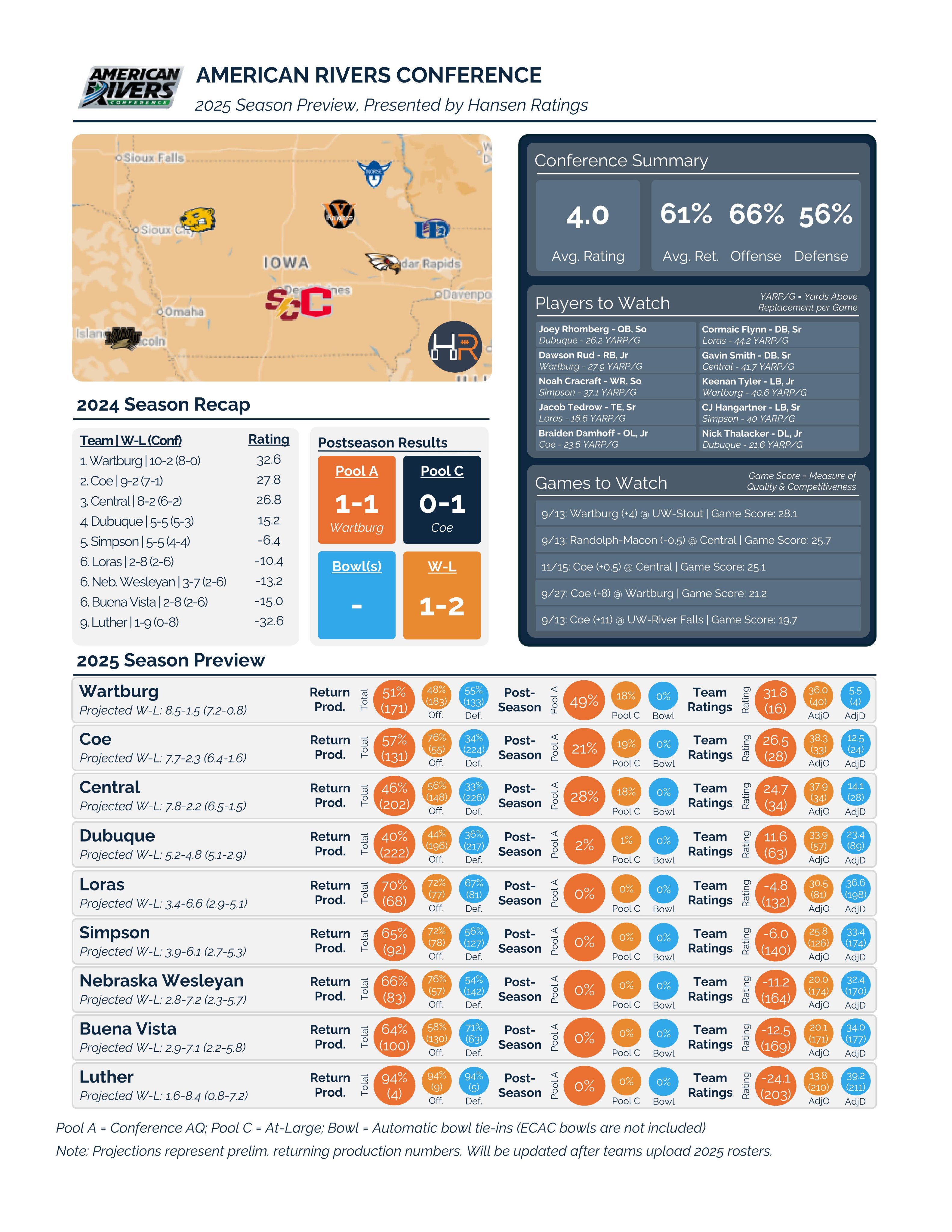 I will say that I do not like that the Key game is so early this year. Week 3 and conference game number 1 feels all too early for what those of us on the eastern side of Dubuque think of as the biggest game of the year. Can't wait for games to be played this weekend!