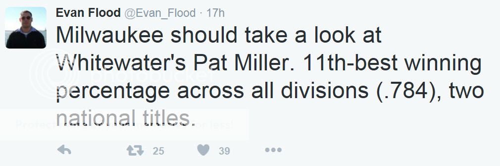 I don't have a clue whether UW-M is interested or whether Pat is interested but one has to wonder, granted it's D1 and all that, whether it's a desirable situation to move into.  Pat Miller certainly has paid his dues, been successful and would be a legitimate candidate IMO.   If the two parties are interested in one another I wish him good luck.  It'll be interesting to see how it plays out.