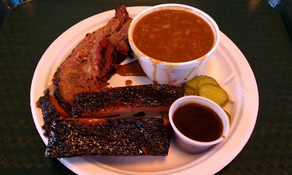 Beans, ribs and something else.  Man, that looks tasty. Especially those beans. I love beans. Mrs Oz doesn't love my love of beans, but some desires cannot be denied.