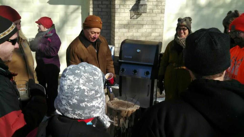 We celebrated in grand style:  Bock on tap, hammerschlagen, brats, and a red-hot poker!