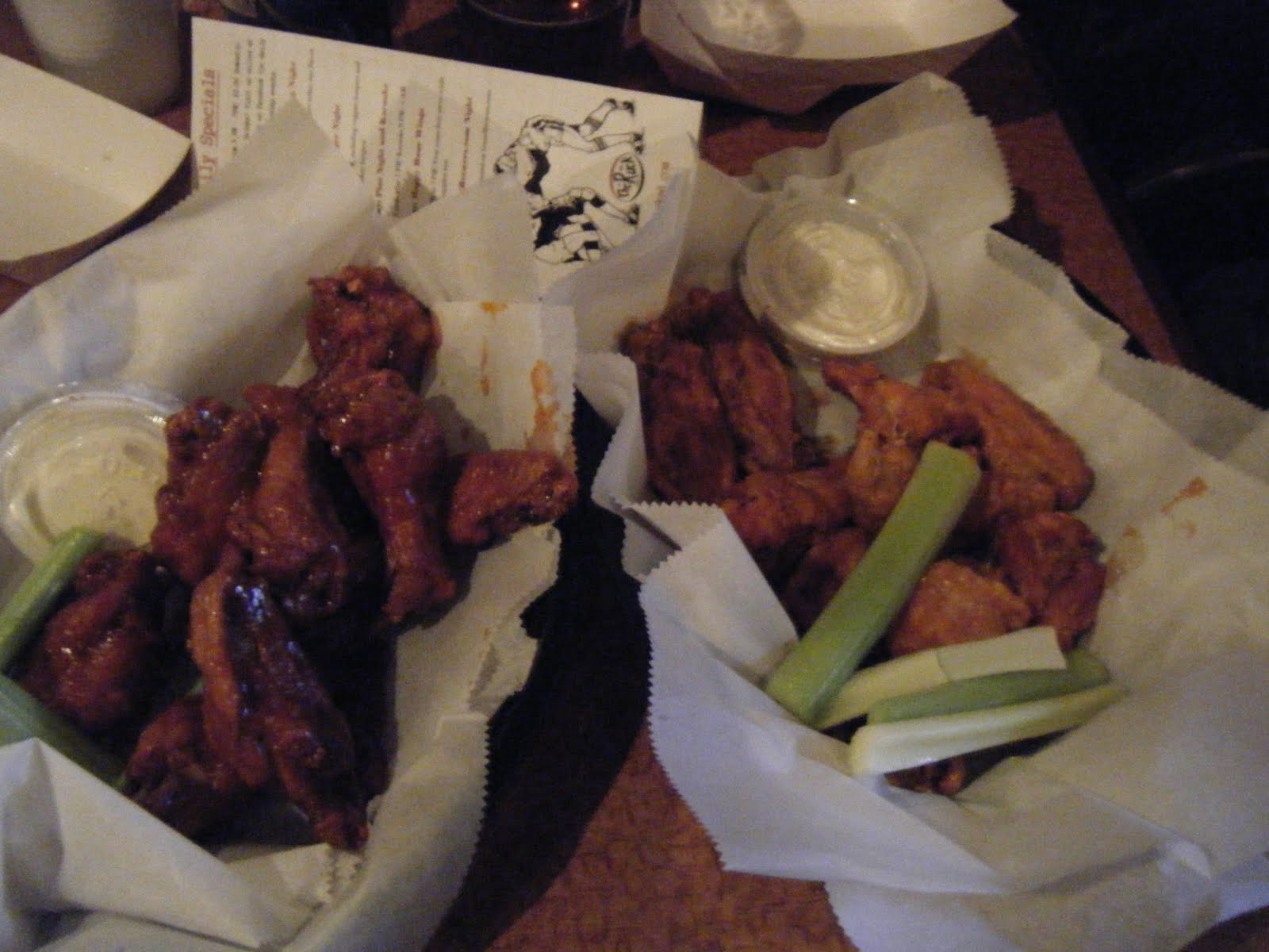 Best wings are at the Ruck which is downtown.  Kind of a dark dive bar, but great wings.  I'd actually recommend the wing-burger.  Huge burger with hot sauce and blue cheese.  Good stuff.  If you're staying up on the hill, down on 15th St. is the Notty Pine and O'Leary's.  Both dive-like.  Notty Pine is a bit more of a restaurant.  O'Leary is a bar but has really good wings too.