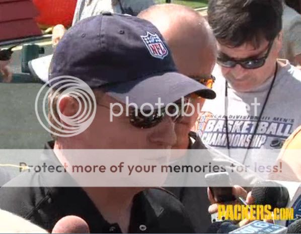 I was watching a video on Packers.com of NFL Commissioner Roger Goodell's visit & interview session with a large group of reporters at Green Bay Packers training camp in Green Bay when I spotted the reporter in the top right corner of the screen shot I took. Check out what it says on his t-shirt: